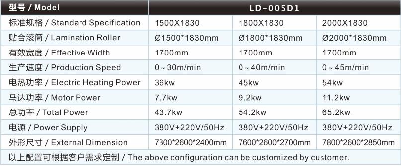 | PPU鞋墊復合機/貼合機-雙膠槽水膠復合機/貼合機LD-005D1主要技術參數 / Major technical parameters |