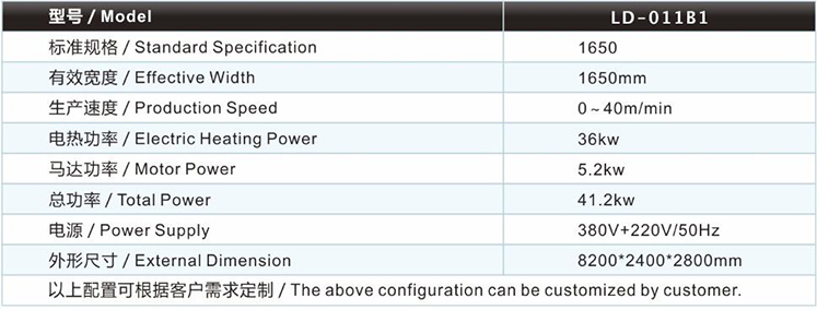 | 表面收卷雙版皮革改色機LD- 011B1的主要技術參數(shù) / Major technical parameters |