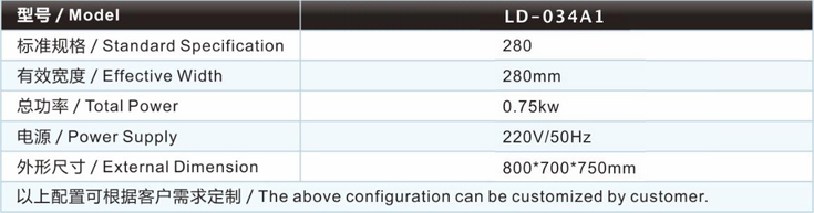 小型上膠機(jī)LD-034A1主要技術(shù)參數(shù) / Major technical parameters