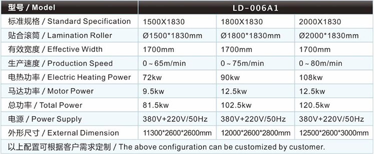 | 鞋材復(fù)合機/貼合機-臥式雙輪雙網(wǎng)單槽水膠高速泡棉復(fù)合機/貼合機LD-006A1主要技術(shù)參數(shù) / Major technical parameters |