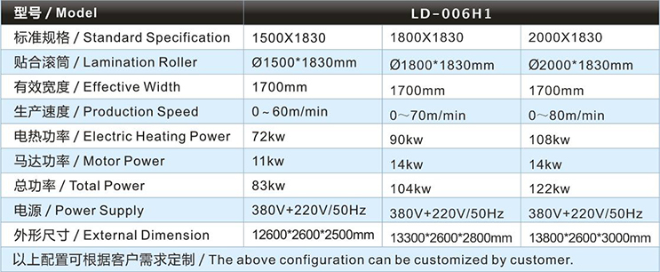 | 水膠復(fù)合機(jī)/貼合機(jī)-立式雙輪三槽水膠高速復(fù)合機(jī)/貼合機(jī)LD-006H1主要技術(shù)參數(shù) / Major technical parameters |