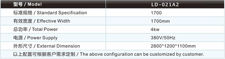 | 直刀裁條機(jī)LD-021A2主要技術(shù)參數(shù) / Major technical parameters |