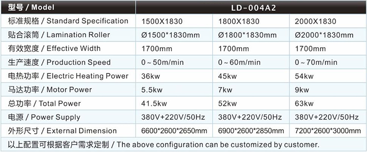 | 汽車用品復(fù)合機(jī)/貼合機(jī)-立式單槽水膠網(wǎng)帶復(fù)合機(jī)/貼合機(jī)LD-004A2主要技術(shù)參數(shù) / Major technical parameters |